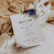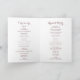 Este ouro rústico deixa a caligrafia, o programa de casamento dobrado é perfeito para um casamento moderno. A design apresenta uma aquarela desenhada à mão, roxa, marinho, pincel, burgundy, flores de marinho, folhas verdes e douradas. Inclua uma citação ou mensagem curta, ordem de serviço, festa de casamento e obrigado da mensagem.