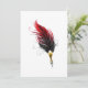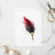 Caneta antiga, desenhada artificialmente, embelezada com pena vermelha escura sobre fundo branco.