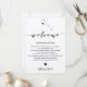 Este cartão moderno e elegante é o símbolo perfeito para as suas bolsas de boas-vindas do hotel. Digite os eventos principais e uma nota personalizada para ajudar seus convidados a navegar no fim de semana.