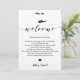 Este cartão moderno e elegante é o símbolo perfeito para as suas bolsas de boas-vindas do hotel. Digite os eventos principais e uma nota personalizada para ajudar seus convidados a navegar no fim de semana.