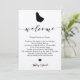 Este cartão moderno e elegante é o símbolo perfeito para as suas bolsas de boas-vindas do hotel. Digite os eventos principais e uma nota personalizada para ajudar seus convidados a navegar no fim de semana.