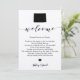 Este cartão moderno e elegante é o símbolo perfeito para as suas bolsas de boas-vindas do hotel. Digite os eventos principais e uma nota personalizada para ajudar seus convidados a navegar no fim de semana.