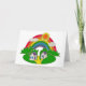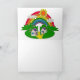 Ilustração bucólica com efeito 3D mostrando paisagem rural e algumas cabanas rurais sob sol e arco-íris