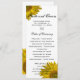 Dê aos seus convidados a ordem de sua cerimônia de casamento no próximo verão ou núpcias de outono com o Programa de Casamento de Girassol bonito. Personalize-o com os nomes pessoais da noiva e do noivo e os detalhes específicos da cerimônia de casamento e a linha de tempo. Esta bela ordem floral personalizada do programa de cerimônias apresenta girassóis amarelos adornando os cantos com fundo branco.