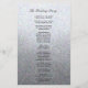 Este elegante e belo programa de casamento tem um design de brilho de prata macio e procuraria excelente para qualquer casamento ou evento. Ele é totalmente personalizável com o seu texto, e você pode alterar a fonte e as cores para torná-lo realmente seu. Desenhada por Amelia Carrie.