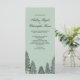 Este programa de casamento rústico mostra pinheiros em um fundo verde. O design é uma imagem de alta qualidade e impressões lindamente. Personalize seu pedido de serviço on-line e veja-o antes de comprá-lo. Este programa de casamento foi desenhado por Victoria na VG Invites.