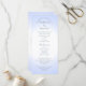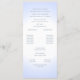 O cartão do programa de casamento azul legante é de dois lados com detalhes da cerimônia nos participantes da frente e da festa de casamento nas costas.
