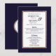 Frente moderna, simples e elegante esboço de pinstripe de rosa dourado impresso em marinho azul e branco, cartões de programa de casamento. Este design clássico e sofisticado é perfeito para o casal de competição de tendências e na moda. Personalize com sua própria mensagem na frente, assim como um monograma personalizado inicial no verso. Todas as impressão de fotos.