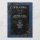 Traga seus convidados para um mundo de elegância escura e encantadora com nosso cartão de casamento gótico vintage. O fundo, envelhecido, fundo azul real e rosas pretos estabelecem a palco de um contraste impressionante, à medida que o texto branco em negrito emerge de intrincadas caixas de texto pretas, o que adiciona um toque de fastidiosidade dramática. Liberte a magia e dê o tom para um dia de casamento inesquecível. Criado pela imprensa simplesmente de farmácia.