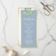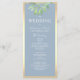 Programa simples, botânico, elegante, de ouro rústico e azul empoeirado, com vegetação aquática e roteiro de caligrafia moderno.