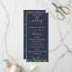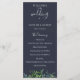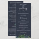 Folhagem da floresta em aquarela rústica, programa de casamento azul naval. O programa apresenta várias linhas para listas de texto personalizadas para a ordem da cerimônia, cortejo e nota de agradecimento.