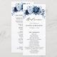 Elegante programa de casamento do tema azul/Marinho Dusty com buquê elegante de azul Dusty, Marinho, botões de flores rosa e folhas de eucalipto azuis. Entre em contato comigo para obter ajuda sobre a personalização ou se você precisar de outro produto com este design.