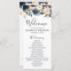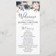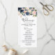 Belo cartão do programa de casamento botânico floral apresenta gráficos florais pintados manualmente com aquarela/rosas em tons ricos de azul-marinho e cor-de-rosa-pincel/pêssego e estilo encantador de letras de mão. Entre em contato comigo para obter ajuda sobre a personalização ou se você precisar de outro produto com este design.