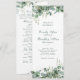 O Elegante Eucalyptus agarra a frente e atrás deste programa de casamento. O guião e o ampersand definem um tema tradicional, mas moderno, para o dia do seu casamento. Personalize todas as informações, incluindo detalhes da cerimônia e assistentes no verso com a mesma fonte do script
