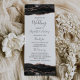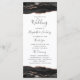 Este elegante e moderno programa de casamento apresenta a aquarela preta agata bordas superiores e inferiores aparadas com rosa dourado falso brilho. O texto aparece em letras elegantes de cinza de carvão vegetal e fontes de impressão em fundo branco.