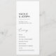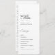 Deixem a cerimônia guiar-se com este programa de casamento preto e branco eterno. Esse design minimalista apresenta um layout limpo e fontes elegantes, garantindo que seus hóspedes possam acompanhar facilmente. O esquema clássico de cores acrescenta um toque de sofisticação, fazer perfeito para um casamento católico tradicional. Este programa é ideal para casais que buscam uma maneira simples e elegante de honrar sua fé no dia do seu casamento.