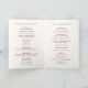 Estilo clássico de programa de casamento dobrado com um design simples, mas elegante, em uma cor burgundy profunda que é perfeito para um casamento de outono ou um casamento de inverno / Natal. Use o modelo para adicionar uma foto ou removê-la na ferramenta de edição de design.