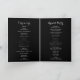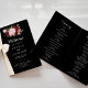 Este clássico programa de casamento preto tropical e burgundy dobrado é perfeito para um casamento rústico. O design de marsala artístico bordo apresenta rosas de aquarela, verdes, cor-de-rosa, burgundy e blush, combinados com verde, bem arrumados num buquê de flores gracioso e radiante. Inclua uma citação ou mensagem curta, ordem de serviço, festa de casamento e obrigado da mensagem.