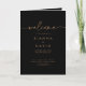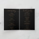 Este programa de casamento clássico de ouro negro dobrado é perfeito para um casamento moderno. O design simples e elegante apresenta a tipografia de script clássico e de rico em ouro queimado. Inclua uma citação ou mensagem curta, ordem de serviço, festa de casamento e obrigado da mensagem.