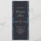 Este design do Programa de Casamento Clássico Elegante Floral Azul Mexicano apresenta um rico quadro vertical inspirado pela arte folclórica mexicana, com motins florais e botânicos estilizados em tons de azul, branco e lacre contra fundo de carvão profundo. As bordas simétricas nas bordas esquerda e direita são adornadas com flores brancas, folhas, enrolação de videiras e elementos folclóricos tradicionais como maracas com padrões geométricos. O centro é vazio esquerdo, criando um espaço elegante perfeito para o texto, fazer-o ideal para uso em programas, menus, convites ou anúncios cerimoniais.