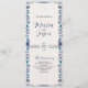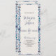 Este design do Programa de Casamento Clássico Elegante Floral Branco Mexicano apresenta um rico quadro vertical inspirado pela arte folclórica mexicana, com motins florais e botânicos estilizados em tons de azul, branco e lacre contra um fundo creme texturizado. As bordas simétricas nas bordas esquerda e direita são adornadas com flores brancas, folhas, enrolação de videiras e elementos folclóricos tradicionais como maracas com padrões geométricos. O centro é vazio esquerdo, criando um espaço elegante perfeito para o texto, fazer-o ideal para uso em programas, menus, convites ou anúncios cerimoniais.