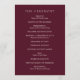 Programa de casamento simples e elegante com um design clássico em uma cor borgonha profunda, perfeito para um casamento de outono ou inverno/Natal.