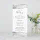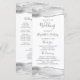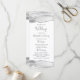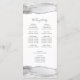 Este elegante e moderno programa de casamento apresenta cinzas e aquarela branca agata bordas de cima e de baixo aparadas com cintilação de prata. O texto aparece em letras elegantes de cinza de carvão vegetal e fontes de impressão em fundo branco.