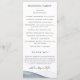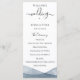 Elegantes e modernas bordas de aquarela azul de tinta descendente, programa de casamento. Programa apresenta uma caligrafia fofa de "casamento" com várias linhas para listas de texto personalizadas para a ordem dos eventos da cerimônia, festa de casamento e nota de agradecimento.