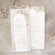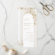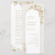 Estes elegantes programas de casamento modernos apresentam ilustrações florais botânicas de ouro falsas, enquadram uma delicada linha de ouro em forma de arco. Seus detalhes de evento aparecem em um roteiro romântico e fontes sofisticadas de serif. Excelente para casamento romântico de jardins e casamento moderno de luxo. Veja todas as peças correspondentes na coleção.