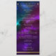 Programa de Casamento de Astronomia da Lua Solar Dourada de Teal Roxo Cósmico apresenta um sol, lua e estrelas com uma estrutura dourada sobre um fundo cósmico roxo colorido, teal e azul com sua ordem de cerimônia na frente e na festa de casamento e obrigado no reverso na tipografia moderna da escrita branca. Personalize editando o texto nas caixas de texto fornecidas. Projetado para você pelo Evco Studio www.zazzle.com/store/evcostudio