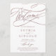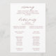 Este programa romântico de casamento de caligrafia rosa é perfeito para um casamento simples. O clássico design moderno apresenta espirais ricos e turbilhões caprichosos com lindíssima tipografia de folha de ouro rosa, com letras magníficas e elegantes. Inclua o nome da noiva e do noivo, a data e a localização do casamento, a mensagem do obrigado, a ordem do serviço e a festa noiva. Nota: Este design não apresenta folha de ouro rosa real. É um gráfico de alta qualidade feito para se parecer com folha de ouro rosa.