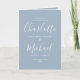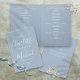 Programa de casamento com grafismo em azul empoeirado apresentando tipografia moderna e sofisticada. Este programa de casamento elegante pode ser personalizado com as informações do seu dia especial de casamento. Concebido por Thisisnotme©