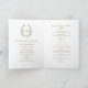 Programa de casamento de arte botânica oval, verde-oliva e branco, desenhado à mão. Simples design de folha, circulando suas próprias iniciais de monograma em verde-oliva e branco. Outras cores e itens de casamento correspondentes disponíveis. © Original desenho em folha oval e design por Sarah Trett para www.mylittleedenweddings.com no Zazzle.