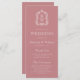 Este elegante programa de casamento inspirado em vintage apresenta um par de iniciais monográficas brancas em letra serif aberta acima e abaixo de uma linha divisória e rodeadas por uma crista botânica de arte em linha num fundo rosa empoeirado.