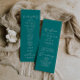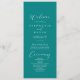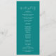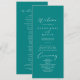 Este programa de casamento teal de na moda caligrafia idílica é perfeito para um casamento simples. O design simples e elegante apresenta a tipografia de scripts clássicos e de rico num fundo teal.