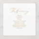 Este elegante programa de casamento romântico apresenta um falso guião dourado num fundo branco. Personalize com os nomes da noiva e noiva e a data do casamento na frente e os detalhes da sua cerimônia nas costas. Desenhada por Susan Coffey.