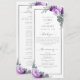 Aqui está o programa perfeito para o seu próximo casamento. Este design apresenta elegantes peonias e rosa-buds em tons de roxo e violeta junto com o verde-folhagem de eucalipto e uma falsa borda de folha de prata cercando seus detalhes do programa de casamento em um fundo branco. Todo texto é facilmente personalizado usando os campos modelo fornecidos. Veja a coleção de produtos complementares de suite de casamento. Se você tiver uma pergunta sobre design ou quiser ver este design em outro produto, por favor, sinta-se à vontade para entrar em contato comigo em jschmidtdesignworks@gmail.com. Design © Judith Schmidt.