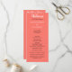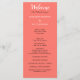 Bem-vindos aos seus convidados de casamento com estes bonito programas de casamento de corais brilhantes com texto branco e preto. Personalize frente e verso com os detalhes da cerimônia da noiva e do noivo para atender às suas necessidades. Projetado para seis damas de honra e nomes de padrinhos de casamento. Se você tiver uma festa de casamento menor, simplesmente exclua as pontes extras e as linhas de padrinhos de casamento não necessárias e remova o espaçamento extra entre títulos clicando no botão deletar para mover a linha para cima para manter o espaçamento de uniformidade. Se você adicionar mais de seis pessoas a cada uma delas, muitos precisarão clicar em Personalizar para reduzir o tamanho da fonte. Se você precisar de ajuda para editar mais, clique em entre em contato com este designer para obter ajuda sobre o posicionamento. Designs originais por TamiraZDesign.