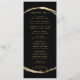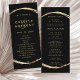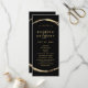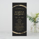 Este programa de casamento apresenta um falso círculo dourado com uma elegante e uma caligrafia simples com fundo preto.