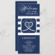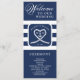 Programa de náutica de casamento em faixas brancas e azuis. Excelente para um Marinho (militar) ou casamento em casa de lago. Design apresenta uma corda em forma de coração com âncora e iniciais de casal no meio. Personalize-o com seus detalhes de casamento.
