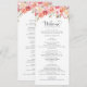 Este elegante programa de casamento apresenta buquê floral de cor d'água em cor rosa e pêssego. inclui o nome da noiva e noiva, a data e o local do casamento, a ordem da cerimônia e da festa de casamento.