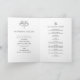 Arte de linha botânica estilizada de flúor de lis e primavera de flor e de videiras em programas de casamento a preto e branco. Personalize com suas próprias iniciais de monograma, data do evento, detalhes da cerimônia de casamento, nomes de festa de casamento e uma mensagem de obrigado. Outras cores e itens de casamento correspondentes disponíveis. © Desenho manual original e design por Sarah Trett para www.mylittleedenweddings.com no Zazzle.
