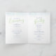 Caligrafia moderna dupla face, branca e azul verde, dab moderno programa de casamento de arte. Edite este programa de casamento com seu próprio nome, datas, texto da cerimônia, assistentes de festa de casamento e obrigados. Um programa simples, mas elegante, simplesmente substitua o texto de amostra por seus próprios detalhes de casamento. Outros itens correspondentes e opções de cor disponíveis. Dabs de aquarelas de arte moderna originais e design por www.mylittleedenweddings.com