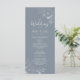 Vintage, elegante, botânico, empoeirado programa de casamento azul, com um sofisticado lugar floral.