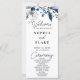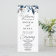 Apresentando um programa de casamento incrível que exude simples elegância e beleza natural. A principal cor desse programa é o branco, com amoras azuis e cinzas, folhas e verde refinadas centradas no topo, criando um design de inspiração botânica perfeito para aqueles que buscam um tema minimalista, country, boho ou botânico. A frente do programa apresenta os nomes dos casais, a data do casamento, a cidade e o estado, juntamente com a ordem da cerimônia, todos apresentados em um bloco preto limpo e simples. As palavras "Bem-vindo", "Cerimônia" e "Festa de casamento" são escritas em uma bonito letra preta moderna, acrescentando um toque de sofisticação ao design geral. Os nomes dos casais são apresentados em uma fonte simples e preta em negrito com espaçamento de letras, fazer-os de forma destacada e adicionando um toque personalizado ao programa. O verso do programa enumera a festa de casamento, completa o pacote e fornece aos convidados todas as informações de que precisam para desfrutar o grande dia. Com múltiplas tonalidades de azul, de cinzas azul-claro médio a azul-escuro, este programa de casamento certamente irá impressionar e deixar uma impressão duradoura nos convidados. No geral, este programa de casamento é um reflexo perfeito do estilo e personalidade do casal, capturando a essência do seu amor e comprometimento uns com os outros. É um belo e significativo acréscimo a qualquer cerimônia de casamento, servindo como um bem-estar apreciado que será precioso nos próximos anos.
