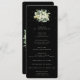 Um simples programa/ordem de cerimônia de núpcias preto, com um buquê/poste de groselhas de neve pintadas manualmente e eucalipto na frente e uma coroa nas costas. Todo o texto é totalmente editável. Veja esta Coleção na minha loja para programas com texto de alternativo e em tamanhos/cores/formas diferentes. Itens de coordenação também disponíveis.