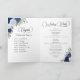 Este belo programa de casamento dobrado tem espaço para informações sobre a cerimônia e a recepção. A frente tem sua foto rodeada de rosas pintados manualmente de aquarelas e flores em tons de azul, marinho e índio empoeirados, junto com a informação básica, incluindo uma recepção e um espaço curto para informações sobre a cerimônia. Dentro é espaço para a ordem de recepção dos eventos, juntamente com detalhes sobre o partido noiva. As costas têm espaço para uma nota de agradecimento. Uma maneira maravilhosa de fazer seus convidados se sentirem bem-vindos e deixá-los saber o que esperar de sua celebração de casamento.