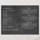 Gráficos de safra destacam o tipo retrô deste programa de casamento em um fundo de quadro ilustrado. Faz parte da Coleção de Casamentos de Chalkboard, mas facilmente se coordenará com qualquer um dos convites de chalkboard. É impressa no papel leve do folheto, para que seja fácil dobrar ao meio.