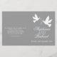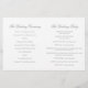 Duas pombas brancas, de dois lados, com duas fitas azuis, programa de casamento. Parte do conjunto de papéis de carta de pomba branca. cinzas legal, tons azuis pastel e brancos. Edite este programa de casamento com seu próprio nome, datas, texto da cerimônia, assistentes de festa de casamento e obrigados. Um programa simples, mas elegante, simplesmente substitua o texto de amostra pelos detalhes de suas informações de casamento e dobre programas ao meio na entrega. Design exclusivo de Sarah Trett.