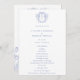 Monograma de Crest Azul Regência, programa de casamento. Vintage inspirou Style Barroco Crest e Chinoiserie Fine Art Floral em Regency Blue. Características, tipografia azul elegante e elegante.